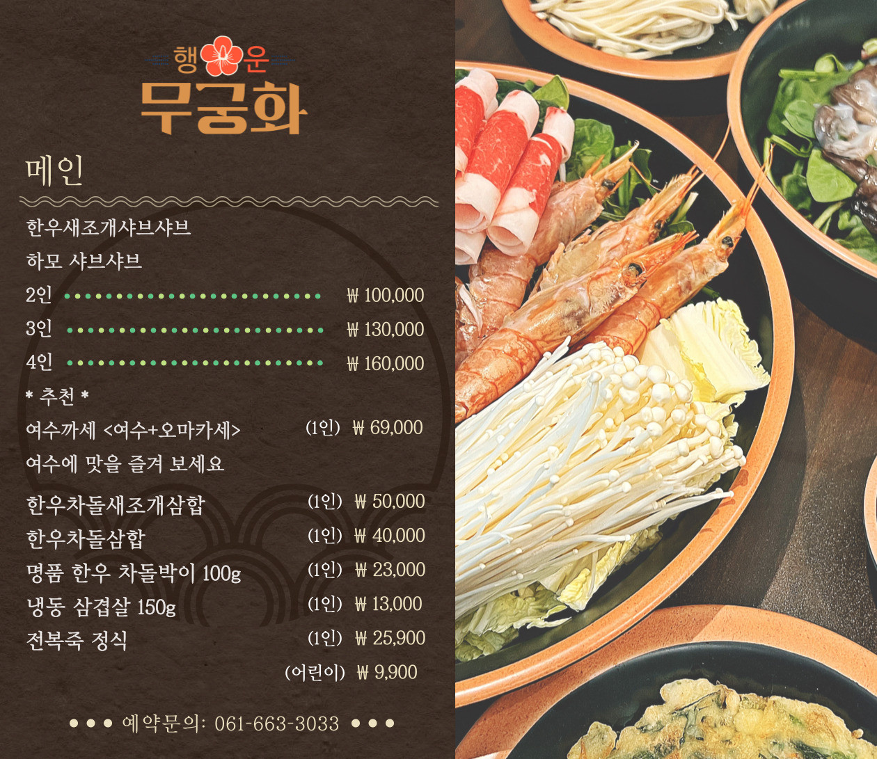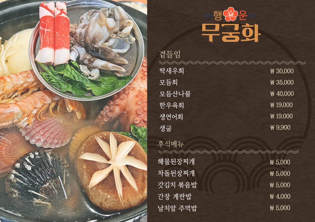 여수 행운무궁화의 메뉴입니다.