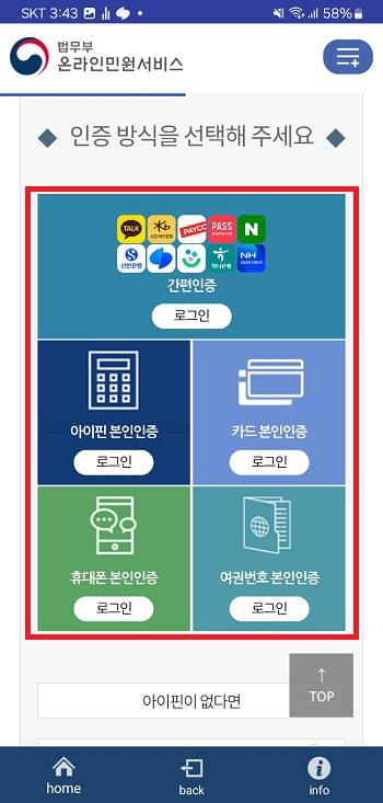 5가지 방법 중 본인에게 편한 방법으로 본인 인증을 해주시면 됩니다.