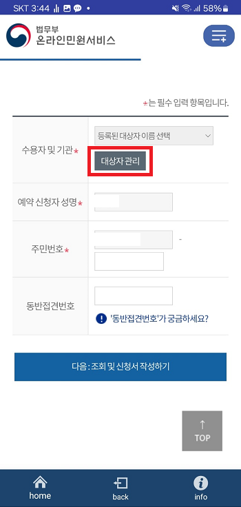 후에 신청하는 일행들은 동반접견번호를 입력하면 동반접견 신청을 할 수 있음