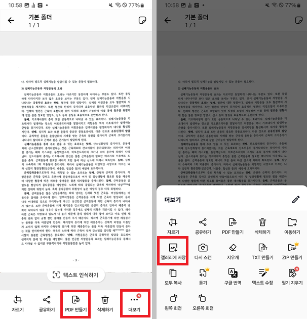 이미지로 저장할 경우: 더보기 → 갤러리에 저장
