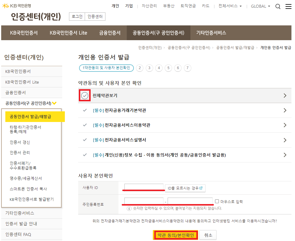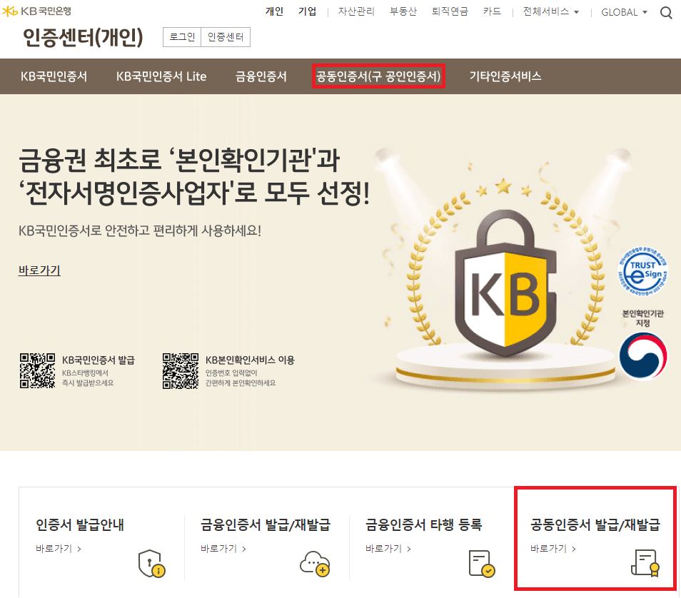 국민은행 공동인증서(구. 공인인증서) 발급방법