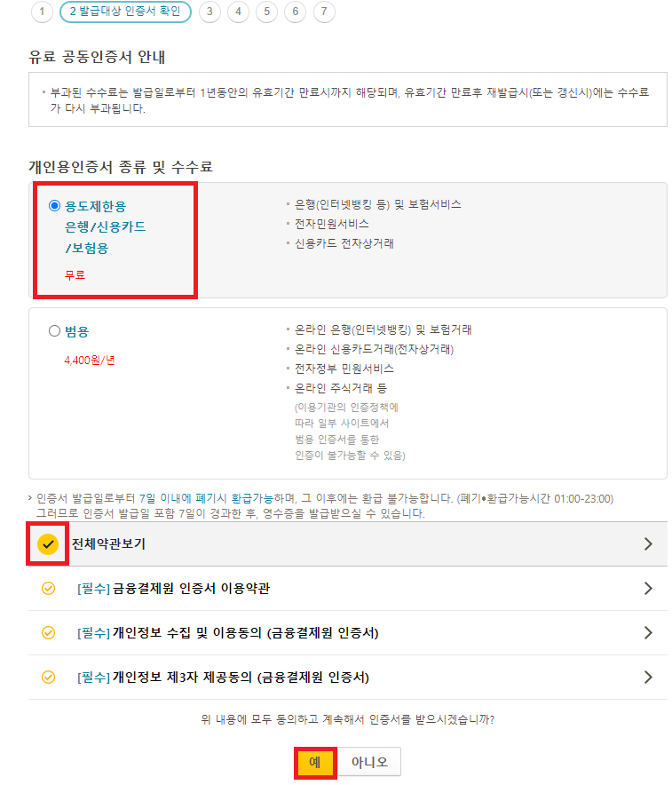 전체동의를 눌러주신 후 예를 클릭해 주시면 됩니다.