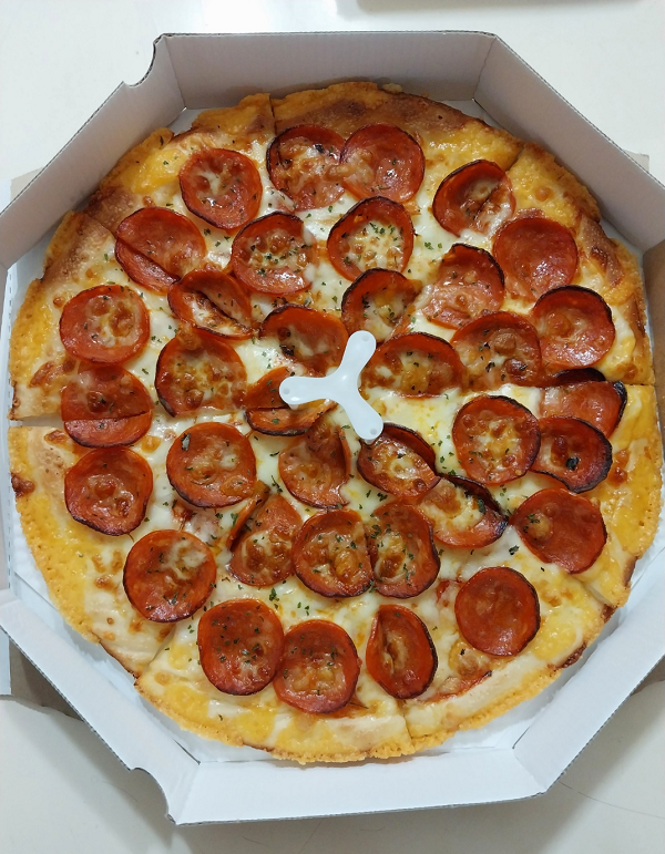 페퍼로니 피자는 페퍼로니가 아낌없이 올라가 있어 페퍼로니 맛이 진해서 맛있었습니다.
