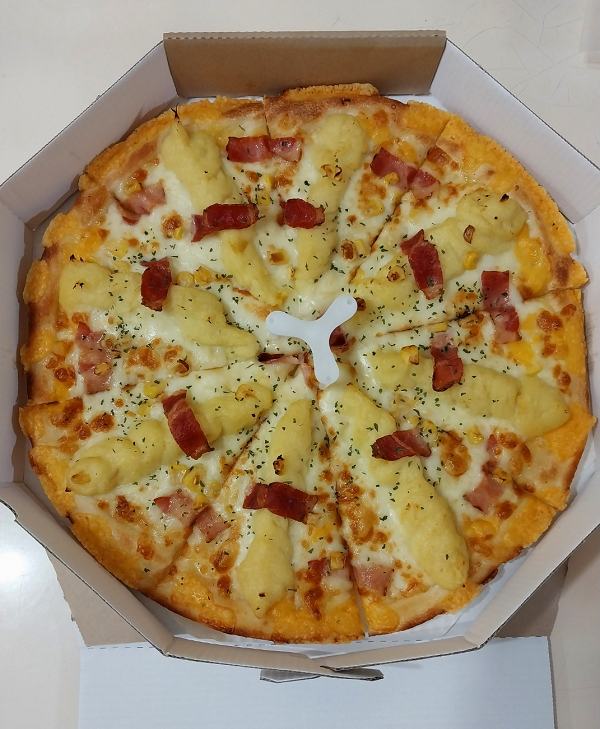 그리고 도우 끝에 바짝 구워진 체다치즈가 고소함과 짭조름한 맛을 더해줘서