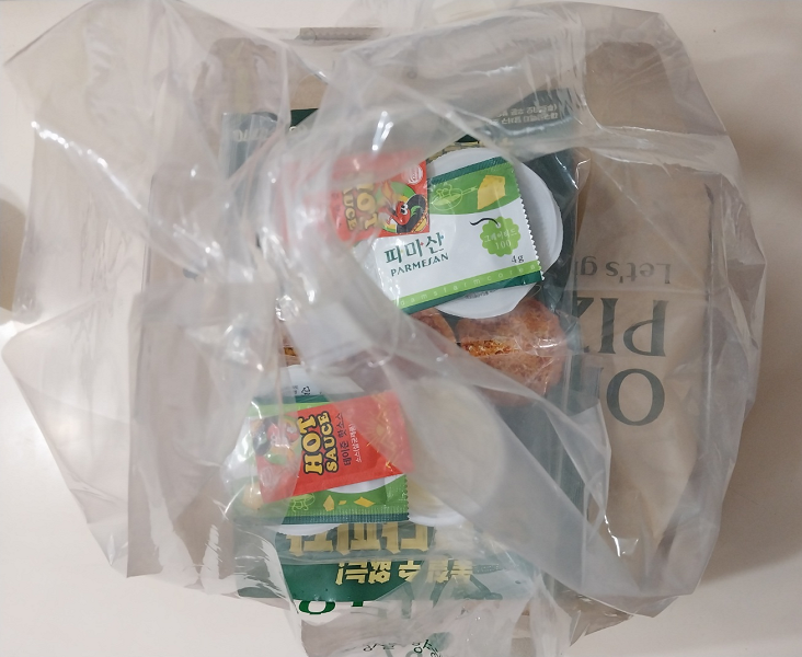 피클 1개, 파마산 치즈가루 1개가 같이 들어있습니다.