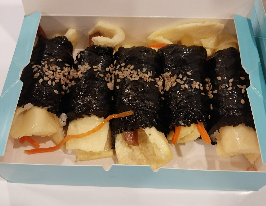 왼쪽부터 계란김밥, 아귀채김밥, 갓참치김밥입니다.