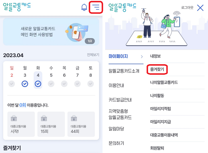알뜰교통카드 즐겨찾기 등록하는 방법
