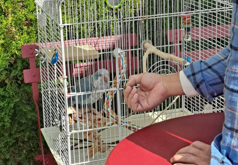 야외에도 새장이 하나 더 있었는데 사장님이 여기서 앵무새 먹이를 주고 계시더군요.