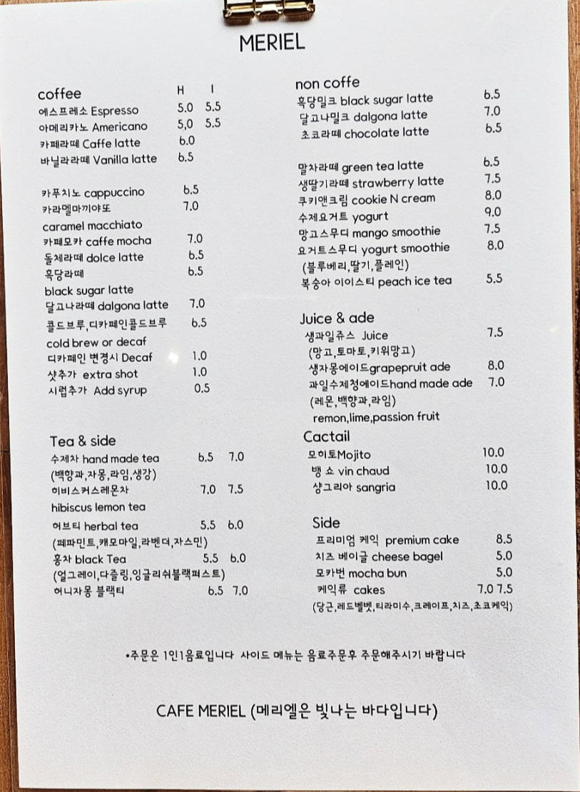 너무 덥거나 춥지 않으면 테라스에 앉아서 바다를 직접 보면서 음료를 마시는 것도 좋을 것 같습니다.