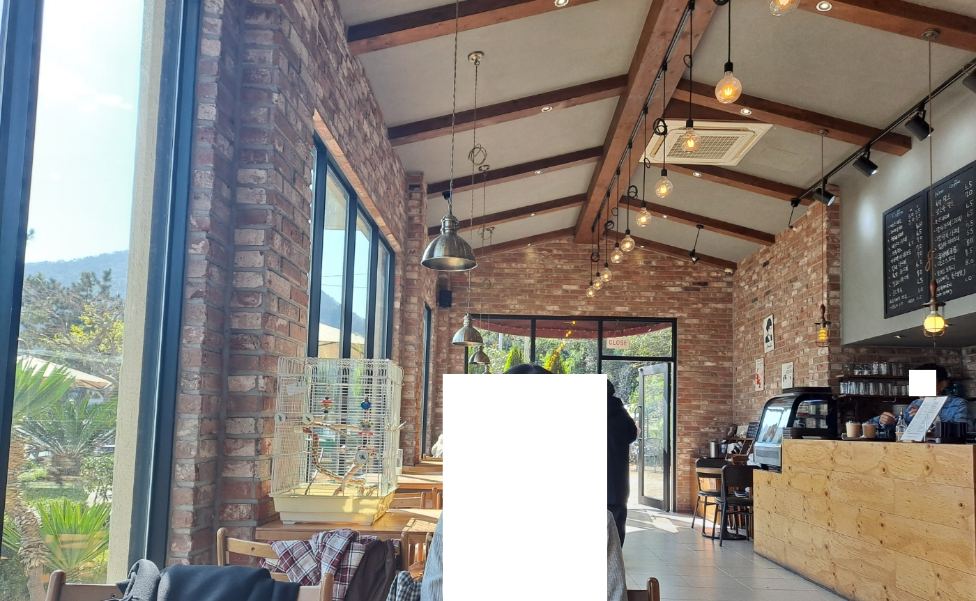 전용 주차장, 야외 테라스, 오션뷰, 다양한 메뉴, 앵무새가 있는 메리엘 카페