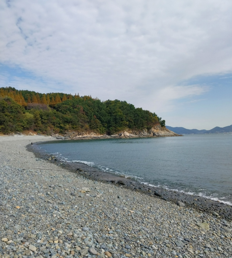 풍화된 자갈이 검은 모래처럼 보이는 만성리 검은모래해변입니다.
