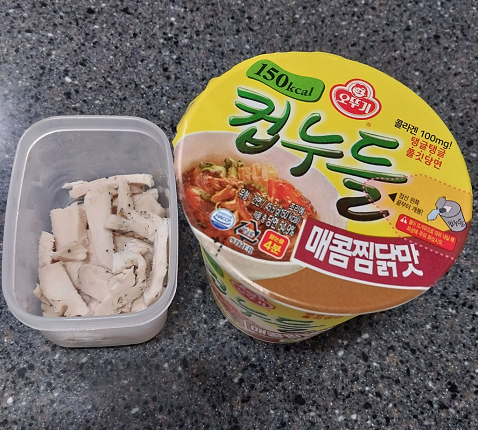 또 저는 하림 닭가슴살 블랙페퍼 맛을 사용했는데 후추 향이 컵누들 매콤찜닭맛 양념과 꽤 잘 어울렸습니다.