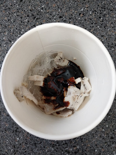 굴소스 베이스의 살짝 매콤한 컵누들 양념 맛과 닭가슴살이 합쳐져 꽤 찜닭스럽습니다.