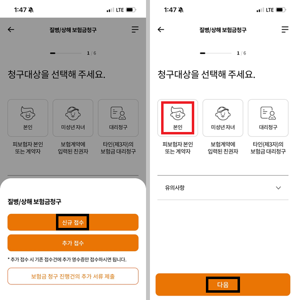 6. 이전에 보험금을 청구한 적 없었던 새로운 질병 사유: 신규 접수