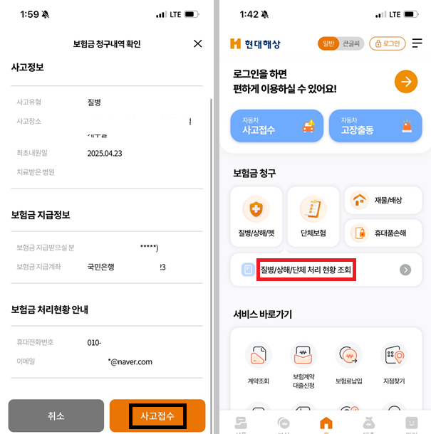 15. 사고접수 누르면 현대해상 실비보험 청구 완료
